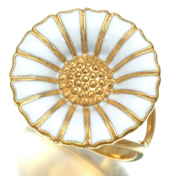 ゴールドフラワーへホワイトの上品なエナメル装飾を飾ったジョージジェンセンのデイジーリングです。
