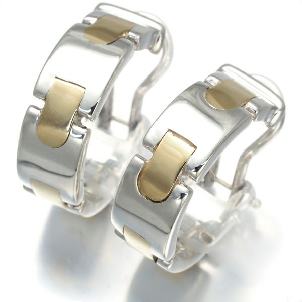 艶めくシルバーへ上品なゴールドのアクセントを飾ったティファニーのフープイヤリング。ボリュームある美しい輝きが耳元を演出します。