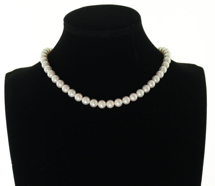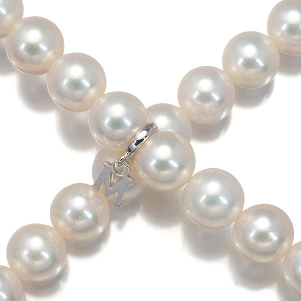 8ミリを超えるボリューム溢れるアコヤ真珠の輝きを贅沢に連ねたミキモトのパールチョーカー。パールホワイトの地色からフワリとピンクの干渉色浮かぶ上質な1珠1珠の美しい輝きが胸元を華やかかつ上品に照らしてくれますよ。