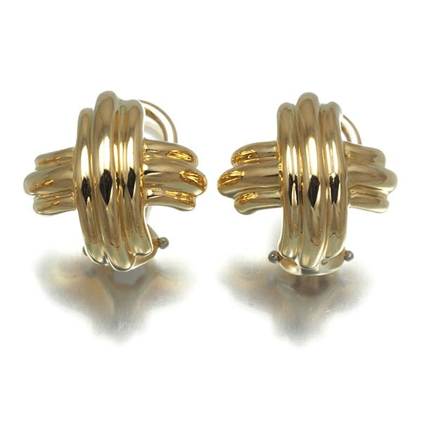 Xをモチーフとしたゴールドの立体的な煌めきをクロスモチーフに飾った ティファニーのシグネチャークロスイヤリングです。