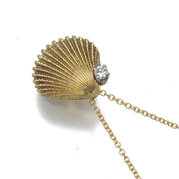 細やかな彫金細工で描かれたシェルが美しい ティファニーの素敵なジュエリー。厳選ダイヤモンドの麗しい輝きが上品な華やかさを添えていますね。