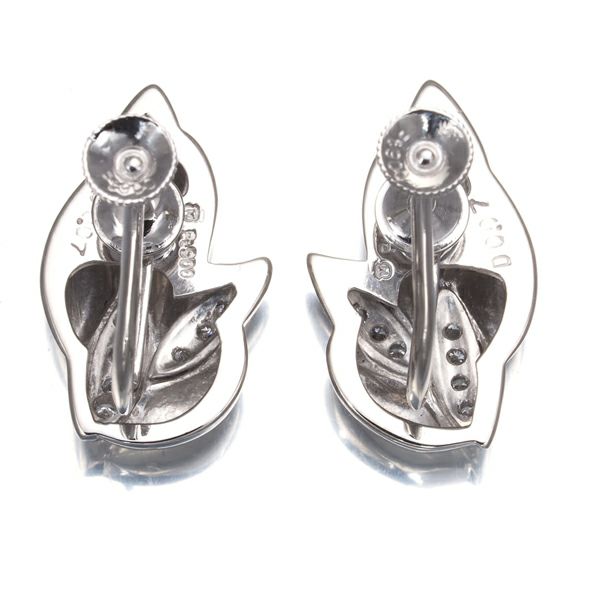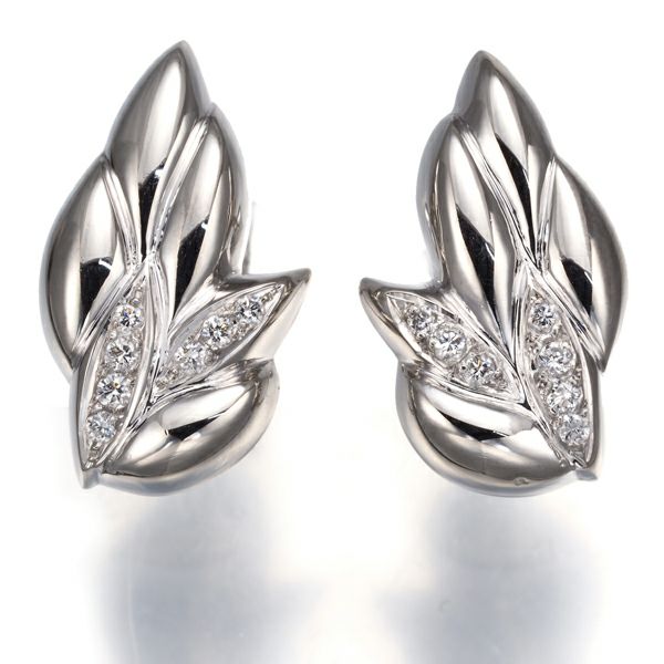 艶やかなプラチナリーフの上品な煌めきと共に厳選ダイヤモンドの輝きを留めたミキモトのイヤリング。耳元にエレガンス与えてくれるダイヤモンドジュエリーですよ。