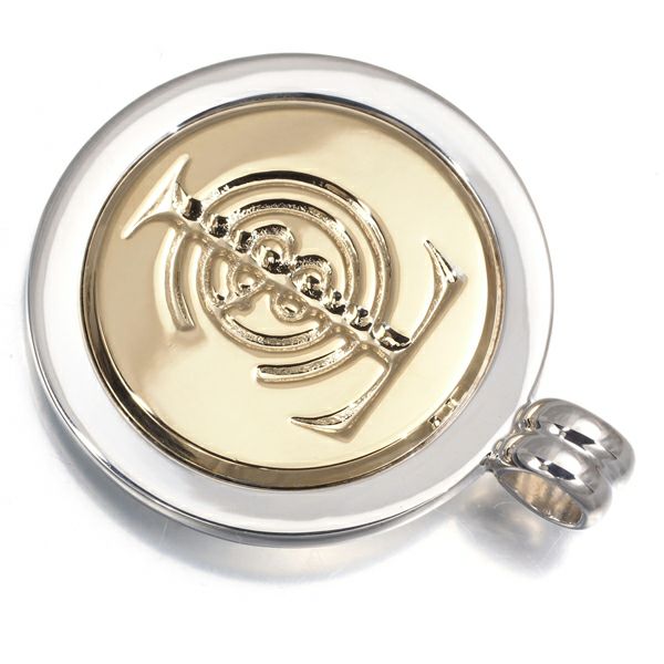 『T&Co.』 の重なり合うブランドロゴとコンビカラーの艶やかな光沢が胸元を飾る ティファニー シンボルコインのペンダントトップです。