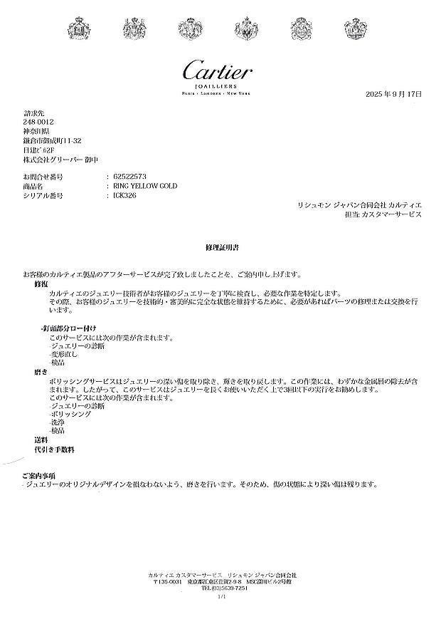 カルティエ リング ジュストアンクル SM 58号 K18YG 修理証明書【中古】BLJ