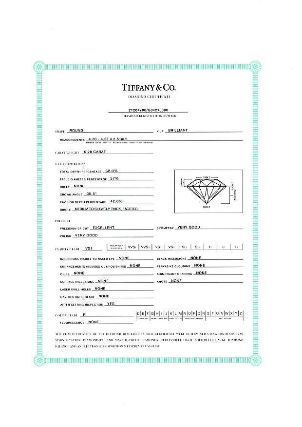 ティファニー リング ダイヤ ダイヤモンド 0.28ct F VS1EX ドッツ ソリティア 12号 Pt950 鑑定書【中古】BLJ