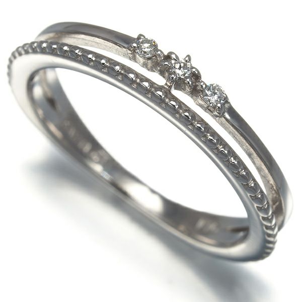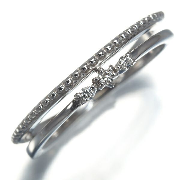 【ポイントアップ対象品】オデュース4℃ リング ダイヤ ダイヤモンド 2ロウ ピンキー 3号 K10WG 【中古】BLJ/GENJ