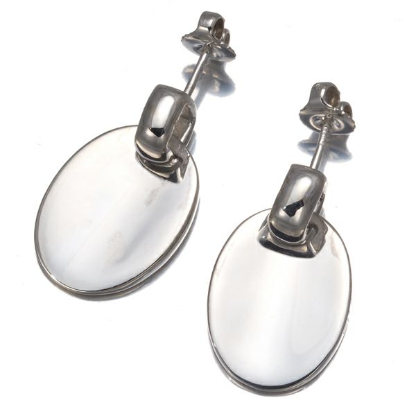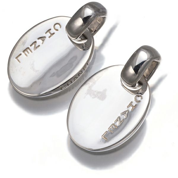 くぼみを持たせたオーバルな輝きにメゾンのロゴが光る シャネルのピアス。装いをスタイリッシュに演出してくれますよ。