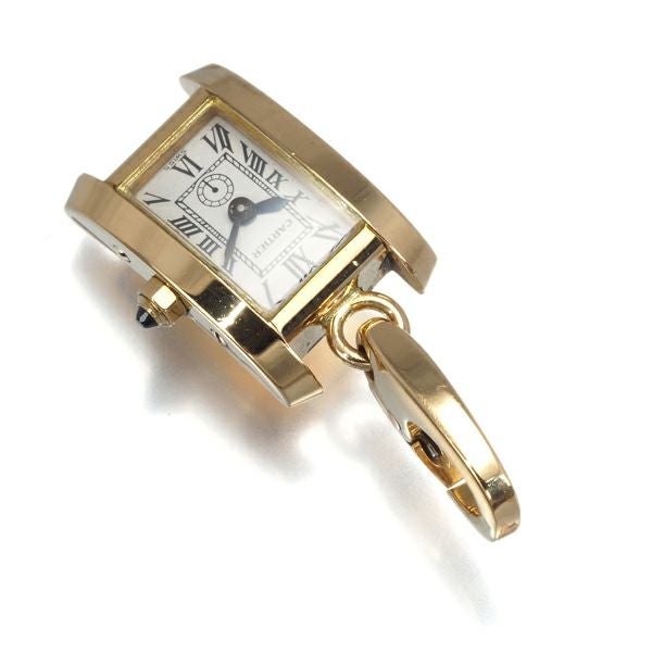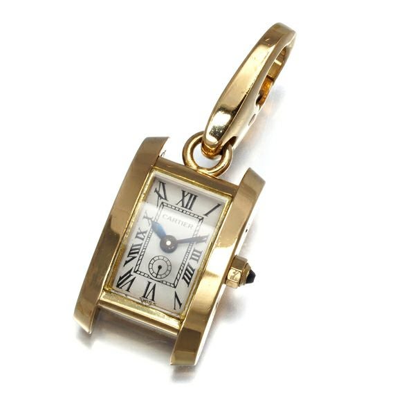 カルティエ ペンダントトップ サファイア タンク 時計 チャーム K18YG/ガラス 【中古】BLJ