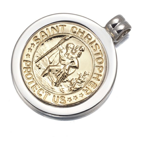 海や水・旅を守る神とされるセントクリストファーがモチーフ。キリストを抱いて川を渡ったシーンを描いた ティファニーのコイントップです。