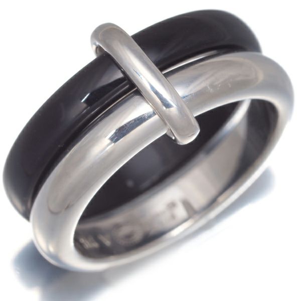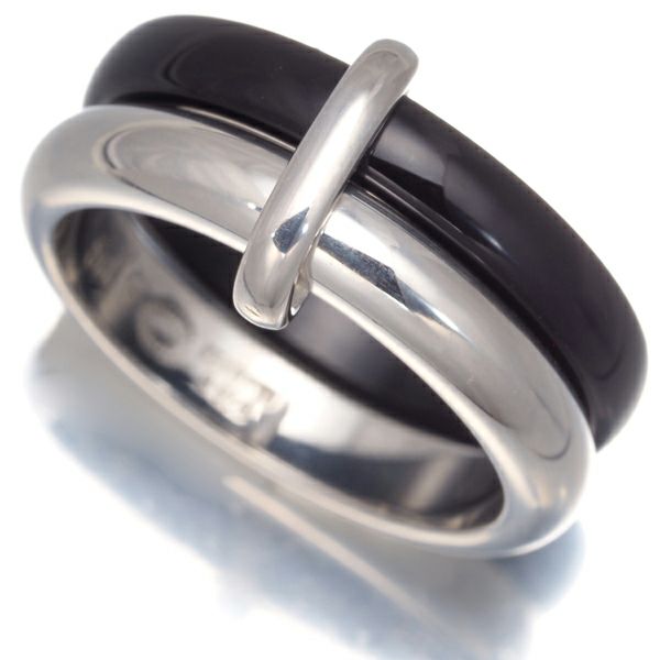 漆黒の輝きを放つオニキスと艶やかなシルバーリングを2連で飾ったジョージジェンセンのリング。お手元をスタイリッシュに飾ってくれます。
