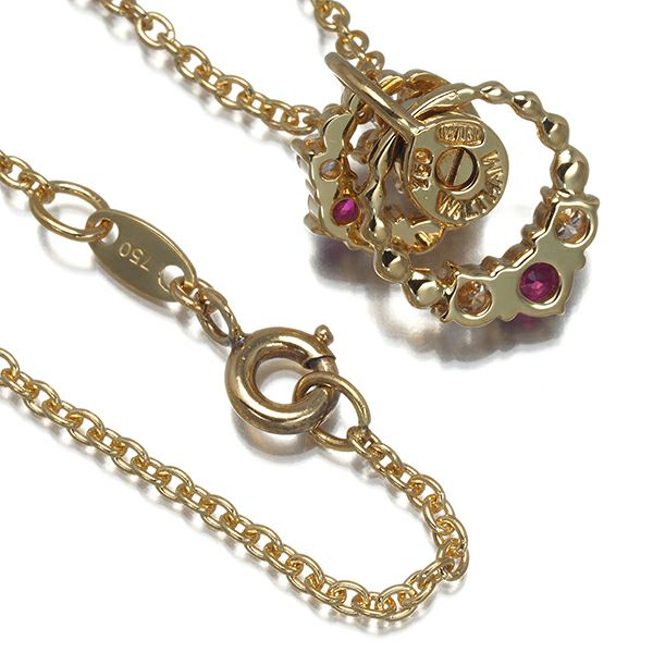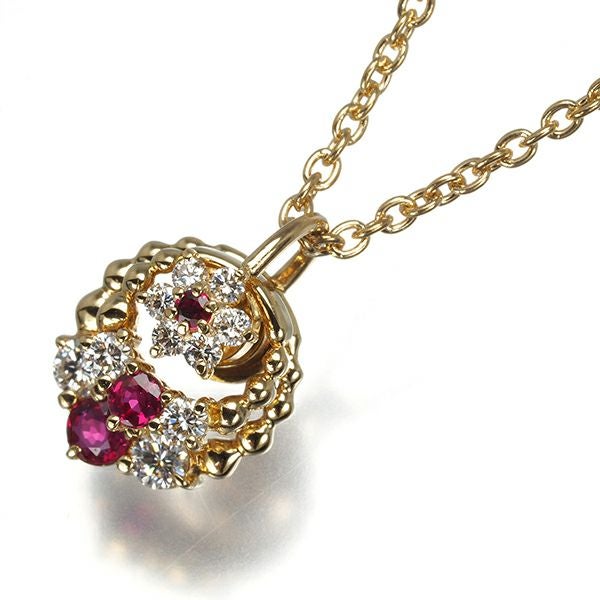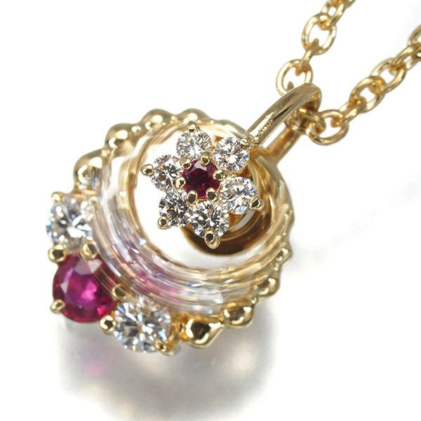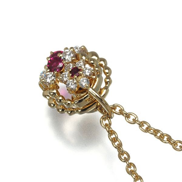 ウォルサム ネックレス ダイヤ ダイヤモンド ルビー スウィング フラワー K18YG 【中古】BLJ/GENJ