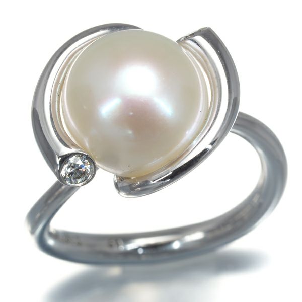 ジョージジェンセン リング パール 真珠 ダイヤ ダイヤモンド マジック 1513 51号 K18WG ソーティング【中古】BLJ