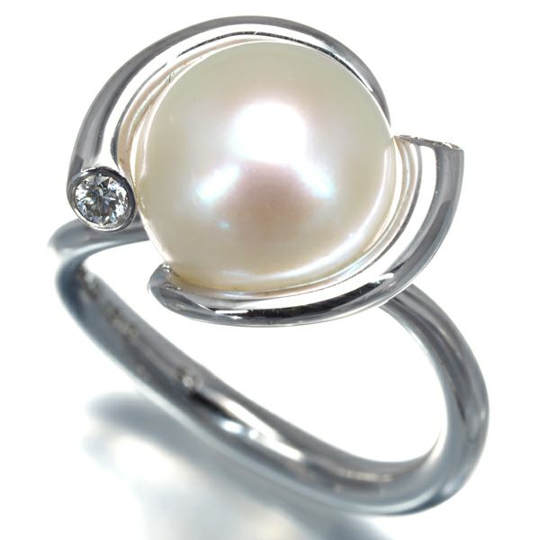 美しいテリ煌めきを披露するパールの輝きを上質ダイヤモンド輝くホワイトゴールドの艶めきで包んだジョージジェンセンのマジックリングです。