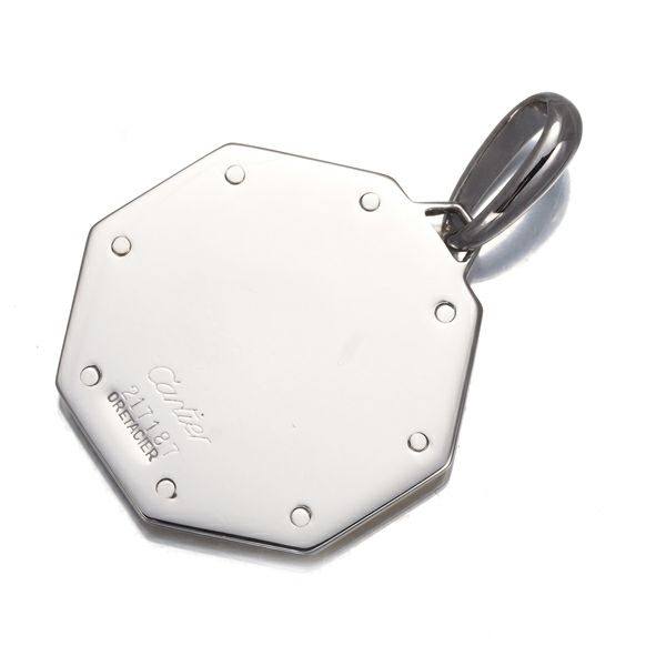 サントスウォッチのデザインをモチーフとしたモダンなカルティエのペンダントトップです。