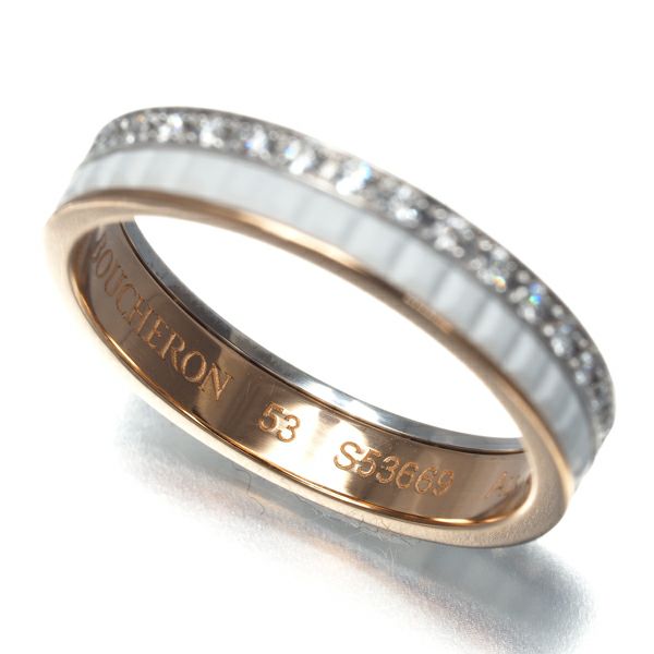 ブシュロン リング ダイヤ ダイヤモンド キャトルホワイト ハーフ 53号 K18WG/PG/ホワイトセラミック 保証書【中古】BLJ