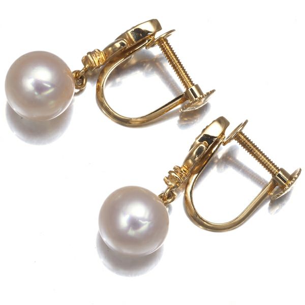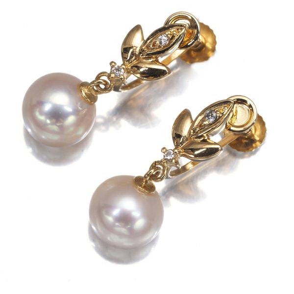 TASAKI タサキ イヤリング パール 真珠 7.5mm ダイヤ ダイヤモンド 0.02ct/0.02ct リーフ K18YG 【中古】BLJ