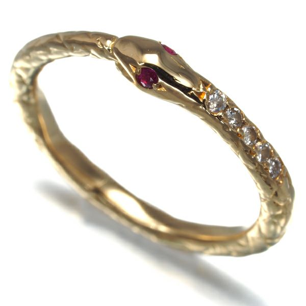 ローリーロドキン リング ルビー ダイヤ ダイヤモンド スネーク アニマル 7.5号 K18YG 【中古】BLJ