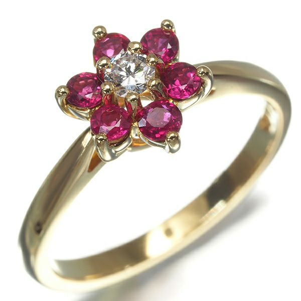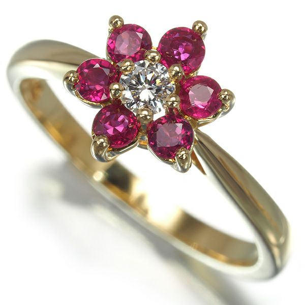 【ポイントアップ対象品】ティファニー リング ルビー ダイヤ ダイヤモンド フラワー 10号 K18YG 【中古】BLJ