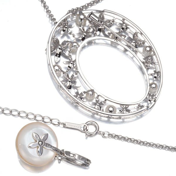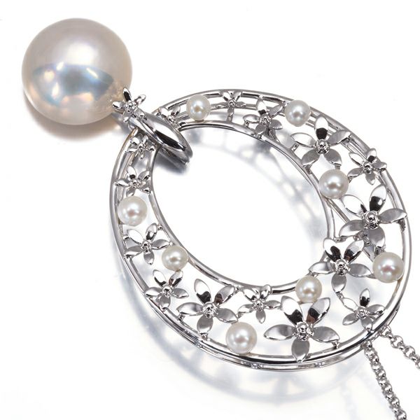 華やかな表情であしらったオーバルモチーフへ艶やかなフラワーモチーフとアコヤ真珠をあしらったタサキのネックレス。下部には鮮やかなテリと共に美しい干渉色浮かべる厳選マベパールの輝きを演出。こちらは取り外しが可能な仕様となりますのでお好みに合わせて胸元を飾れますよ。