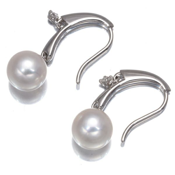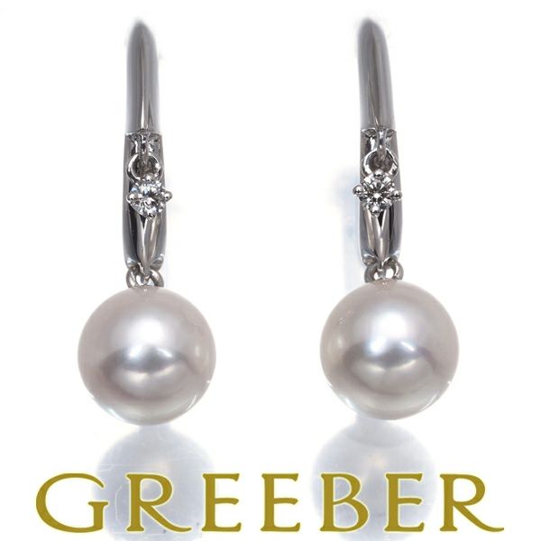 【ポイントアップ対象品】ミキモト ピアス パール 真珠 7.2mm ダイヤ ダイヤモンド フック K18WG 【中古】BLJ
