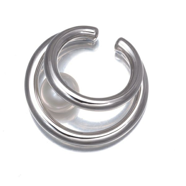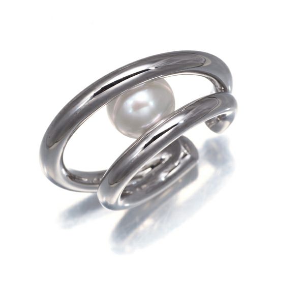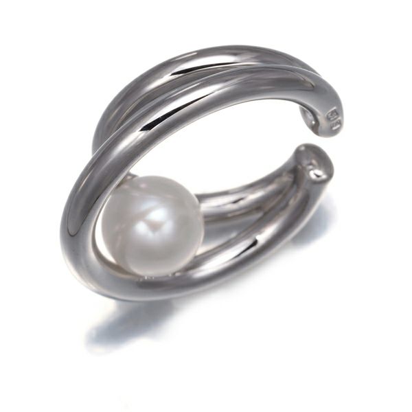 艶やかなシルバーのダブルループデザインへ上質アコヤ真珠の輝きを飾ったミキモトのイヤーカフです。※こちらは片耳のみの販売です。