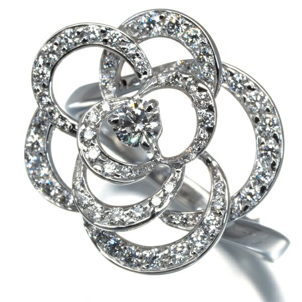 シャネル リング ダイヤ ダイヤモンド カメリア ミディアム 53号 K18WG 【中古】BLJ