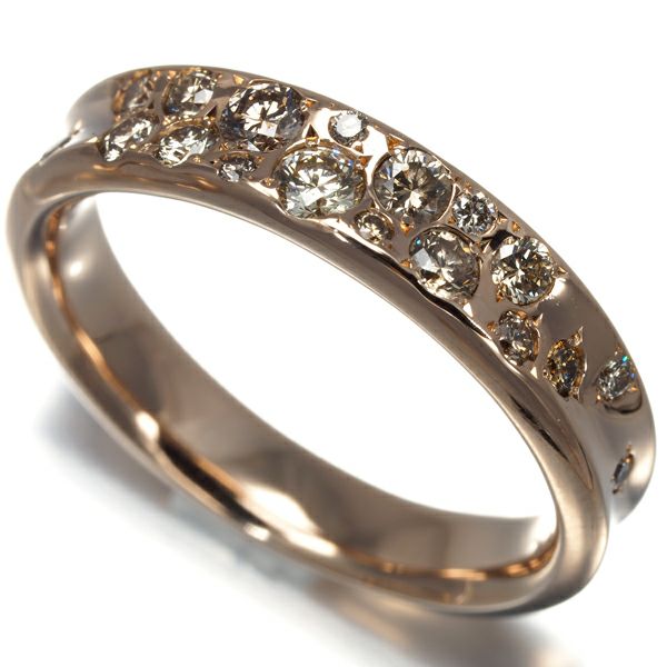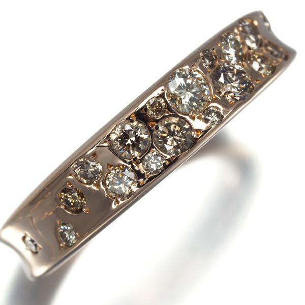巧みにセッティングされた濃淡の上質ブラウンダイヤが上品に輝く カシケイのメランジェ ダイヤモンドリングです。