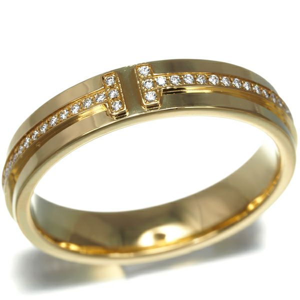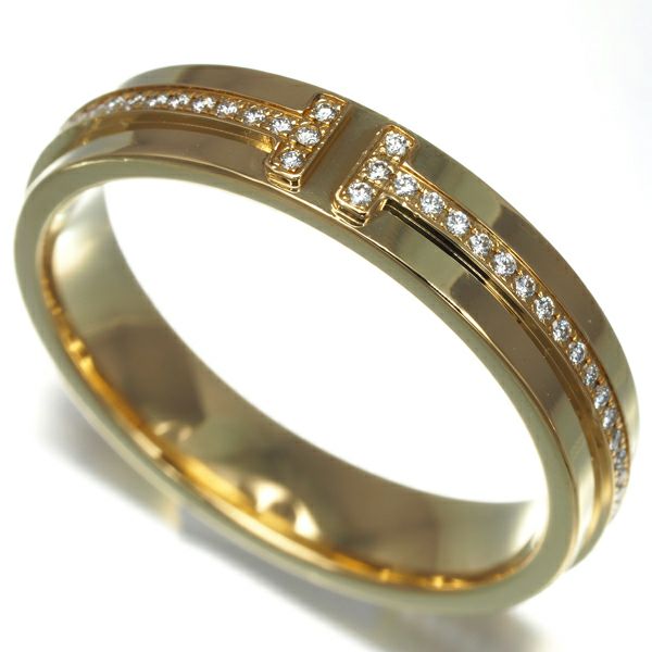 ティファニー リング ダイヤ ダイヤモンド T ナロー 17.5号 K18YG 【中古】BLJ