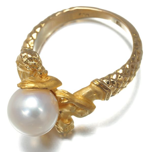 カレライカレラ リング パール 真珠 8.3mm 人魚 サカナ 11号 K18YG 【中古】BLJ