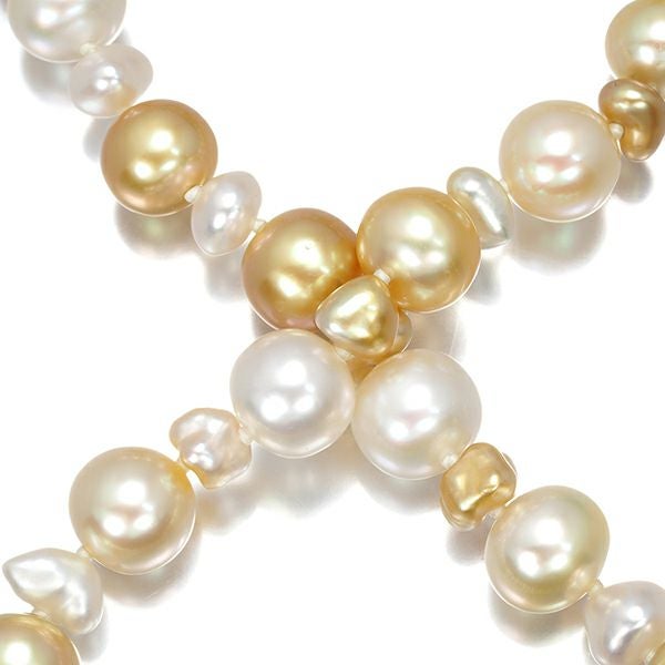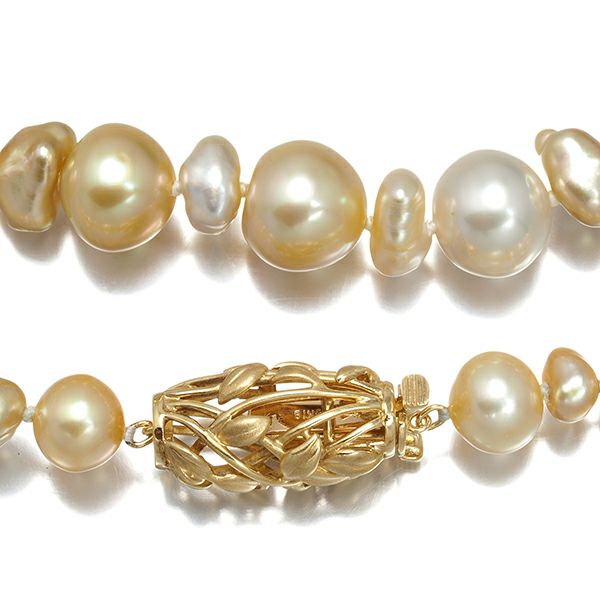 煌々と輝く月の雫から創られたようなお色味と艶やかな輝きが実に美しい タサキ厳選真珠を贅沢に飾ったネックレス。スノーホワイトから濃厚なゴールデン、ニアラウンドからナチュラルバロックと 様々なフォルムと輝きをご堪能いただける魅力的な逸品。丁寧な彫金細工で描かれたクラスプも素敵ですね。装いの胸元を気品溢れる華やかさで輝かせてくれますよ。
