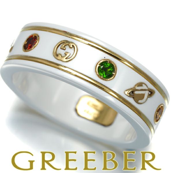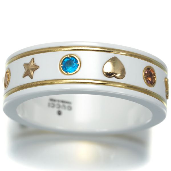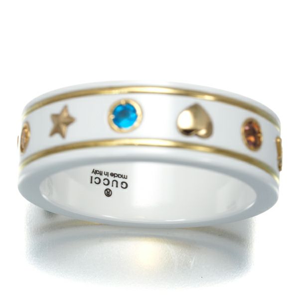 グッチ リング ジェムストーン アイコン マルチ 18号 K18YG/シンセティックコランダム 【中古】BLJ