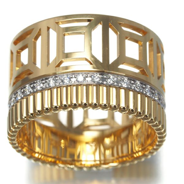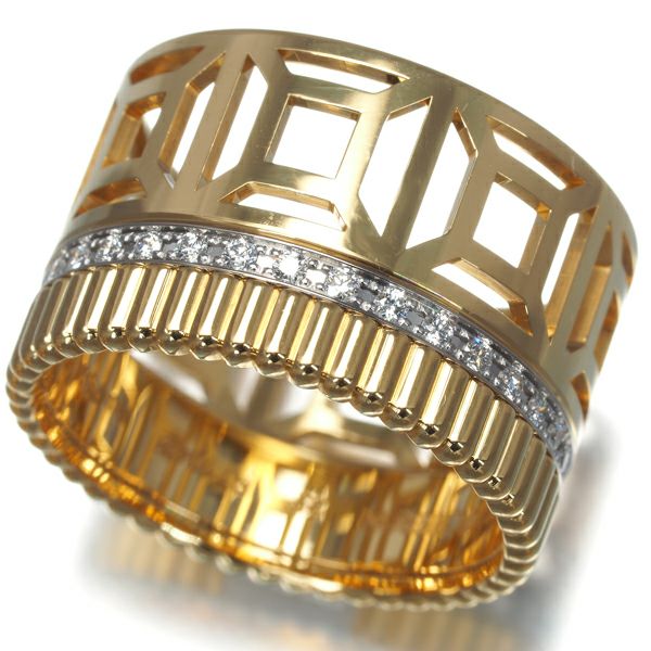 メゾンの歴史を物語るキャトルコレクションから、アイコニックなデザインに厳選ダイヤの輝きが美しい ブシュロンのキャトル ラディアント オープンワーク ダイヤモンドリングです。