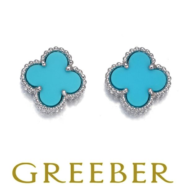 【ポイントアップ対象商品】ヴァンクリーフ&アーペル ピアス ターコイズ トルコ石 スウィートアルハンブラ K18WG 保証書/未修理証明書【中古】BLJ
