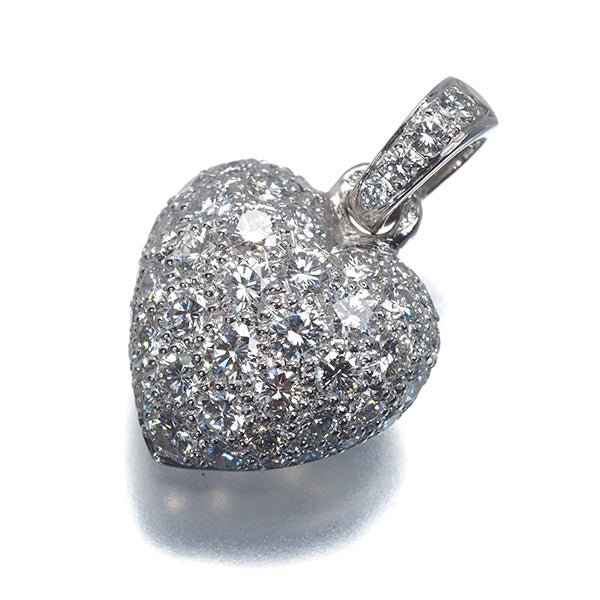 ふっくらとしたハートモチーフに ぎっしりとセッティングされた極上ダイヤモンドが眩いばかりの輝きを放つ カルティエの逸品ジュエリー。贅沢な輝きが胸元を包み込みます。