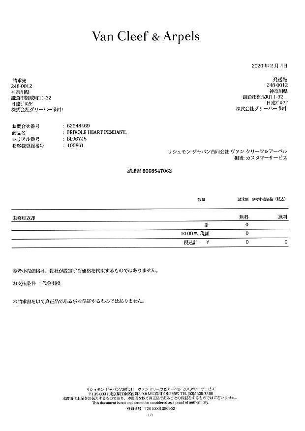 ヴァンクリーフ&アーペル ネックレス フリヴォル ハート K18YG 未修理証明書【中古】BLJ