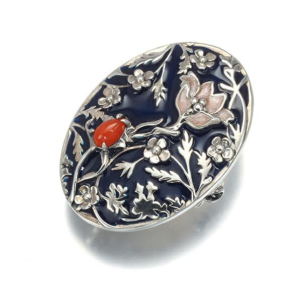 碌山 ロクザン ブローチ兼ペンダントトップ 珊瑚 サンゴ ウィリアム・モリス メドウェイ シルバー 925/エナメル 【中古】BLJ/GENJ