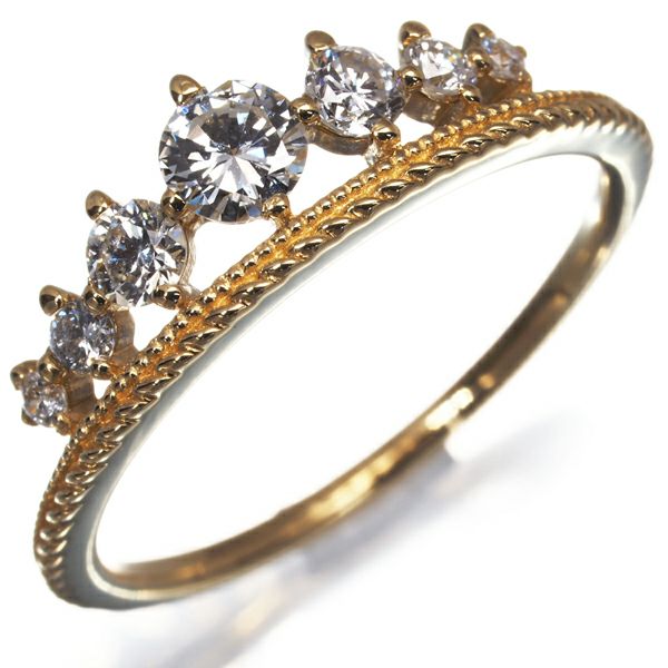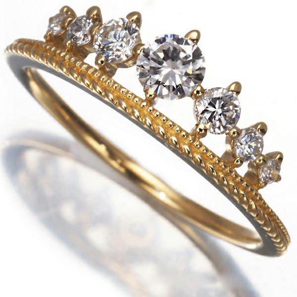 多少の内包物もお手元では感じられない眩い輝きを放つダイヤモンドを厳選。煌びやかな虹色の光彩を放つ7石をヌーディに飾ったティアラモチーフが美しい メザンジュのダイヤモンドリング。エレガントなニュアンスとともに お手元に華やかな輝きを披露する一品ですよ。