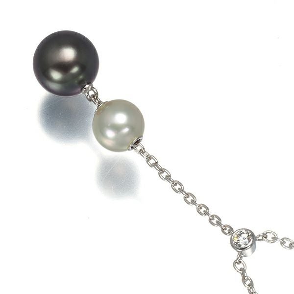 ミキモト ネックレス ブラックパール 真珠 9.4mm 真珠 7.3mm ダイヤ ダイヤモンド K18WG 【中古】BLJ 大幅値下げ品