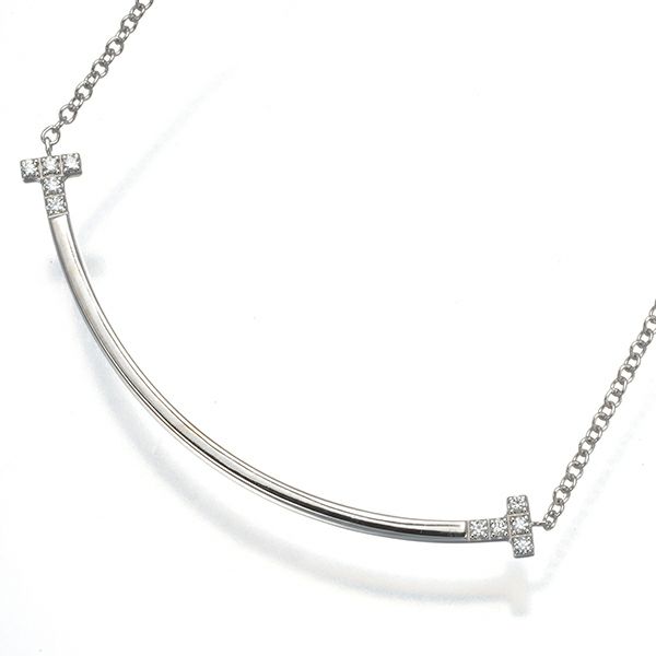 ティファニー ネックレス ダイヤ ダイヤモンド Tスマイル スモール K18WG 【中古】BLJ