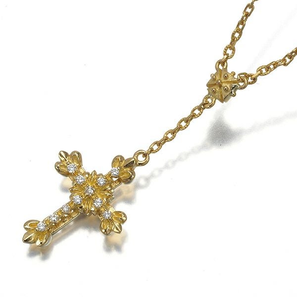 アーカー ネックレス ダイヤ ダイヤモンド 0.10ct カーニバルロザリオ クロス K18YG 【中古】BLJ