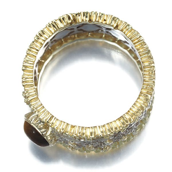 ※タイガーアイには僅かな面スレがございます。またイエローゴールドの内側と側面の一部に5ヶ所ほどの割れがございますが、ご使用に際し問題はなく、いずれも着用時気になるレベルではないと思われます。