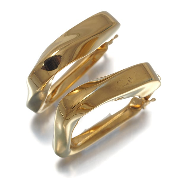 捻りを加えたユニークなフォルムと存在感で装いの耳元を艶やかに輝かせてくれる ボッテガヴェネタのフープピアスですよ。