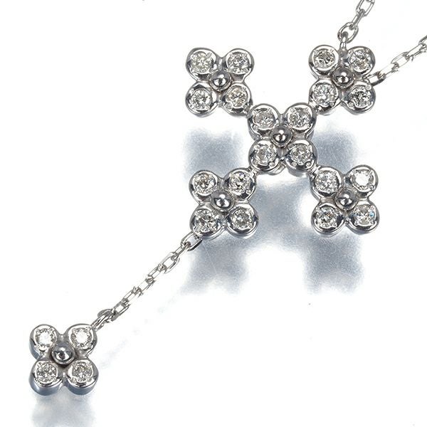 ヴァンドーム ネックレス ダイヤ ダイヤモンド 0.14ct クロス フラワー Yドロップ K18WG 【中古】BLJ/GENJ