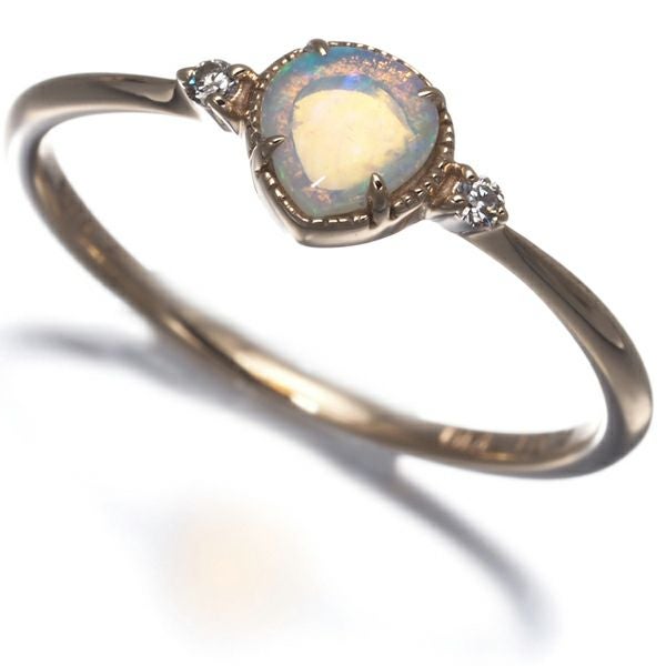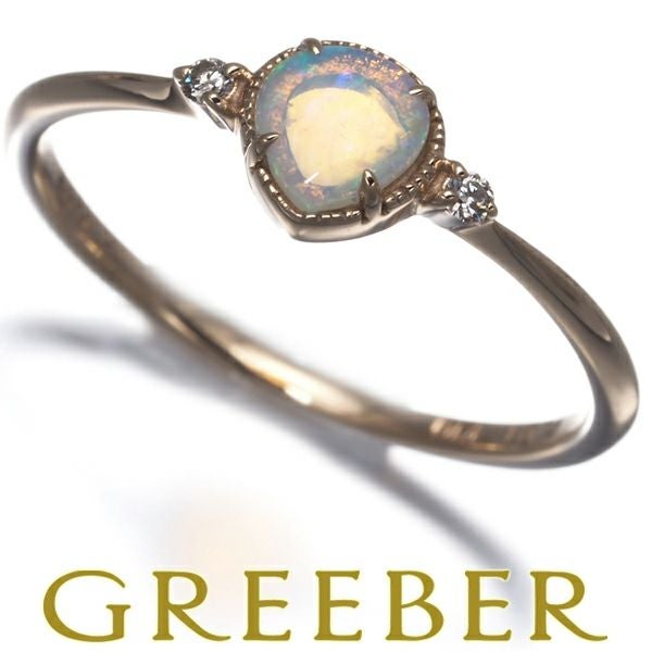 【ポイントアップ対象商品】アガット リング ホワイトオパール ダイヤ ダイヤモンド 0.01ct ピンキー 5号 K10YG 【中古】BLJ