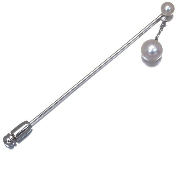 【ポイントアップ対象商品】ミキモト ブローチ パール 真珠 4.6mm/7.1mm ダイヤ ダイヤモンド 揺れる ラペルピン K14WG 【中古】BLJ