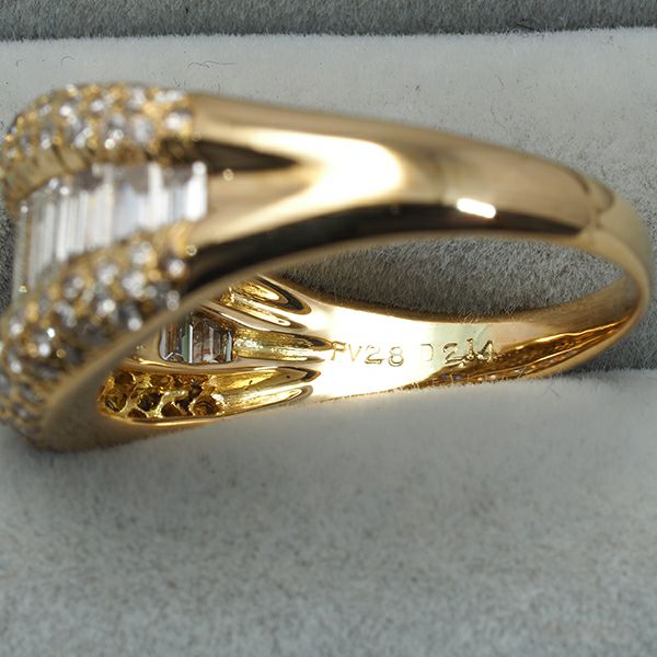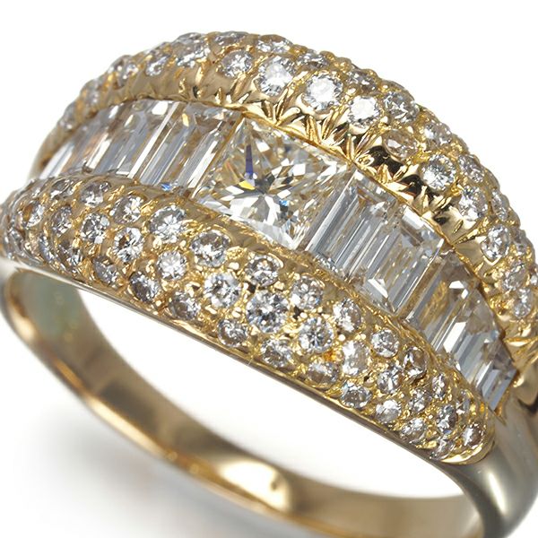【ポイントアップ対象商品】ポンテヴェキオ リング ダイヤ ダイヤモンド 2.14ct プリンセス バケット パヴェ 3種カット 15号 K18YG 【中古】BLJ
