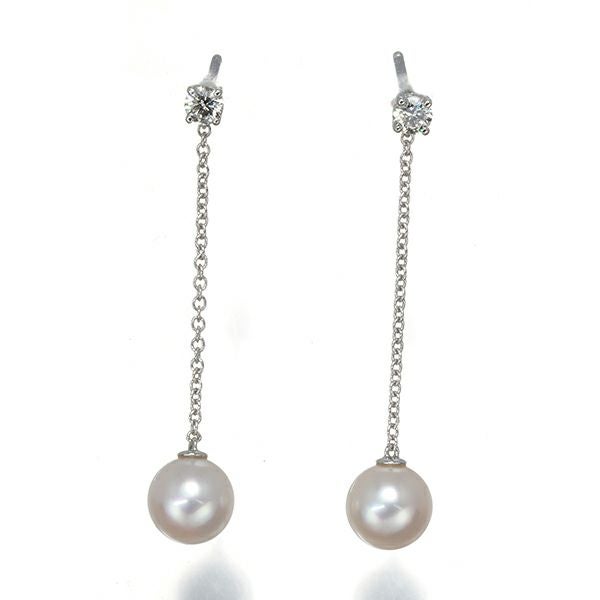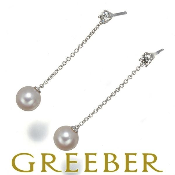 ティファニー ピアス パール 真珠 6.7mm ダイヤ ダイヤモンド K18WG 【中古】BLJ