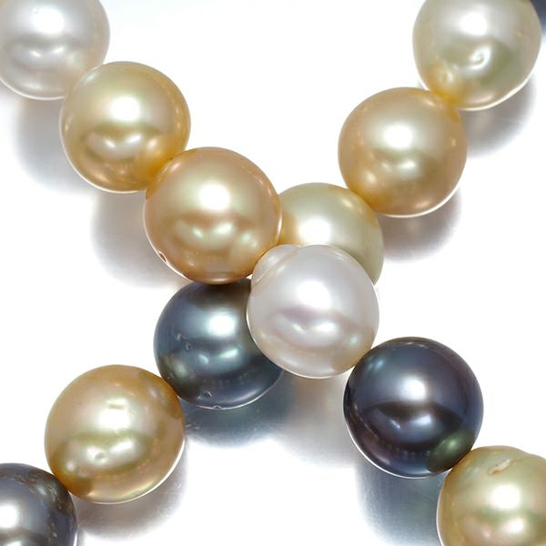 すっきりとしたホワイトから、グレー、ブラック、月の雫で創られたかのような濃厚なゴールデンまで、強いテリ艶を魅せる厳選真珠の輝きを贅沢に飾った タサキの美しいネックレスです。