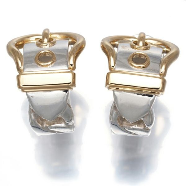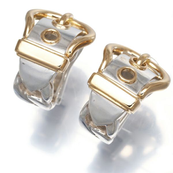 大胆な輝きを披露する エルメスのブックルセリエイヤリング。印象的なバックルデザインが耳元に確かな輝きを演出しますよ。