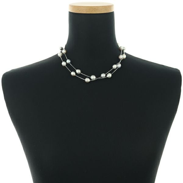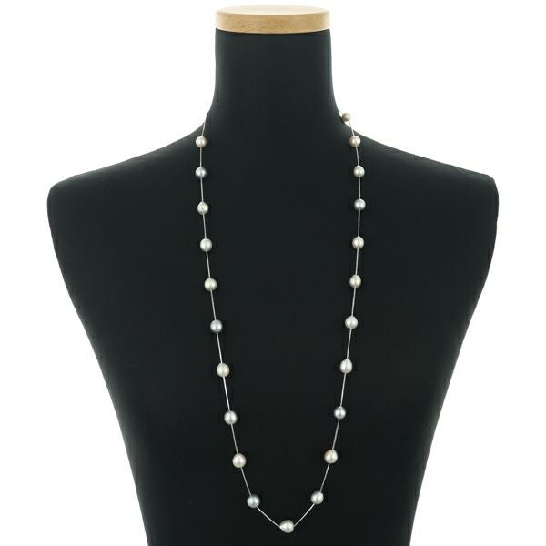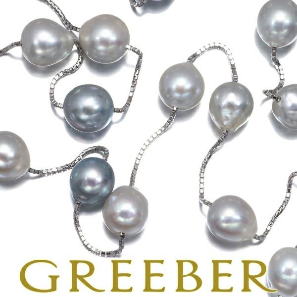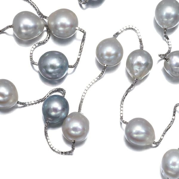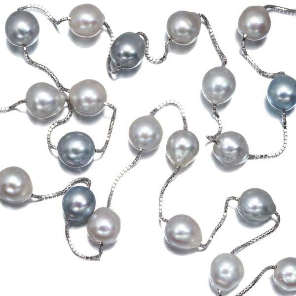 ホワイト~ブルーグレー系の上品な色合いを持つパールを贅沢なステーションセッティングで並べたタサキの真珠ネックレスですよ。